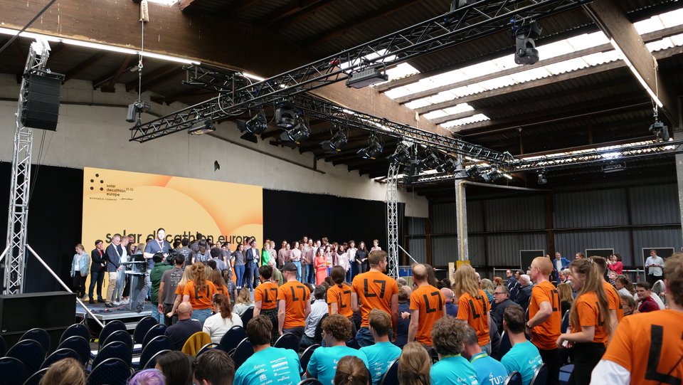 Ab Mittag findet die Eröffnungszeremonie statt. Es melden sich lokale Politiker zu Wort, die Orgaisator:innen des SDE in Wuppertal und die Energie Endeavor Foundation. Den Abschluss der Zeremonie bilden die Teams, die allesamt einzeln auf die Bühne gebeten und kräftigt von den anderen Teams beklatscht werden. Die Stimmung ist super und unterstützend. Alle freuen sich, dass es endlich losgeht!