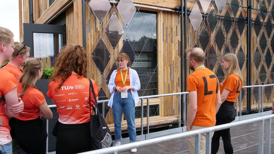 Der erste Tag auf dem Gelände gestaltet sich etwas chaotisch. Am Tag vorher haben wir noch grob unsere Führungen durch die HDU (Hosing Demonstratoin Unit) geplant und können nicht abschätzen, was uns an diesem Tag erwartet. Gespannt versammelt sich ein Teil des Teams zur ersten Schicht um 8 Uhr vor unserem Demonstrator. Die Teilnehmer:innen des Energiewende Bauen Kongress sind schon sehr früh auf dem Campus unterwegs und bekommen die ersten Führungen.