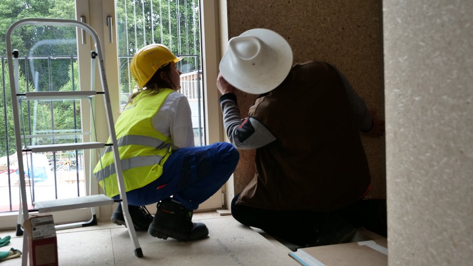 Und die Fassadenbegrünung? Lässt auch auf sich warten. Und was tut man, wenn die Fassadenbegrünung nicht rechtzeitig kommt? Richtig, die Pflanztröge streichen, in die die Begrünung gepflanzt wird. Das Streichen wird jedoch von einigen gerne angenommen und bietet eine gute Abwechslung zu den schweren Abeiten im Innenausbau.